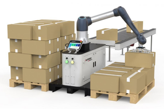 Pour permettre la dépalettisation et/ou la palettisation robotisée de vos charges les plus lourdes dans le périmètre d’évolution des opérateurs, nous avons adopté la gamme industrielle collaborative DOOSAN. C’est le choix d’une solution robuste et à grande capacité de charge (jusqu'à environ 25kg). Ce robot intelligent soulage l’opérateur de mouvements pénibles et répétitifs. La machine en fonctionnement peut être arrêtée d'un simple geste ou contact de l'opérateur. Son installation rapide réduira les coûts d'intégration.