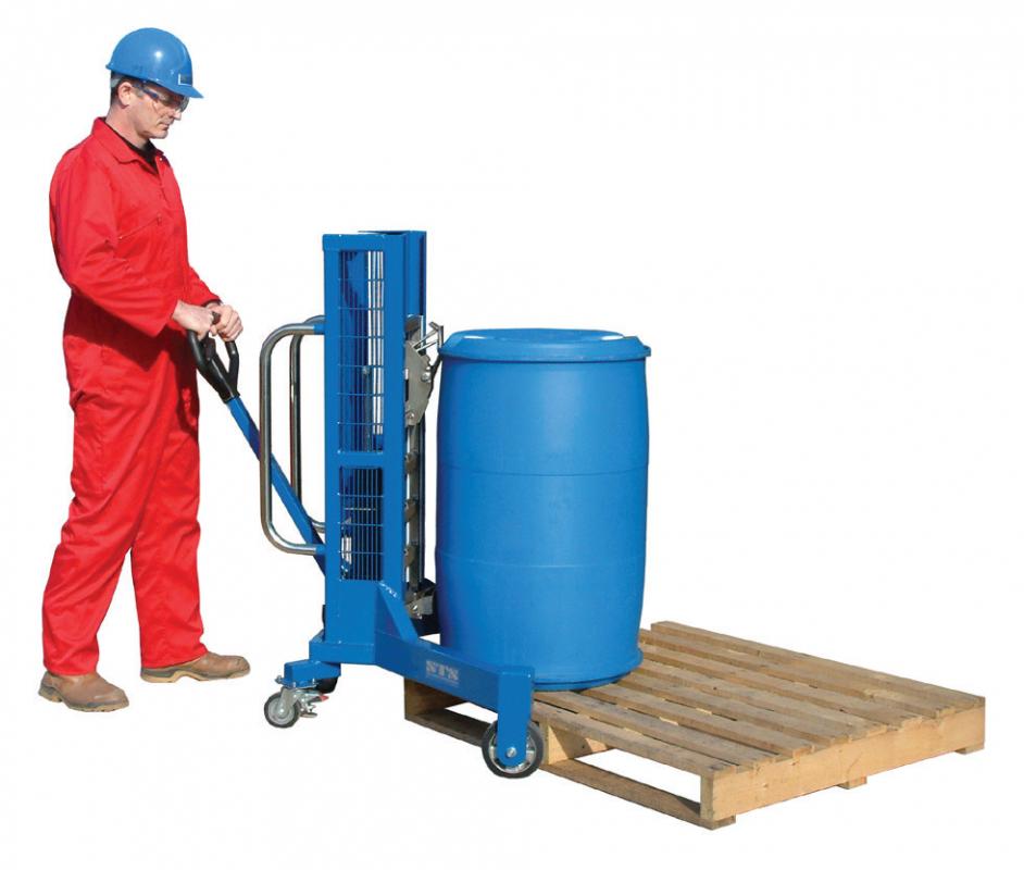 - Il s'agit d'un dépalettiseur d’angle avec élévateur hydraulique actionné manuellement et conçu pour lever et manœuvrer divers fûts.