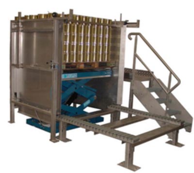 Facilitez le travail des opérateurs en limitant les postures contraignantes avec ce dépalettiseur manuel à râteau.