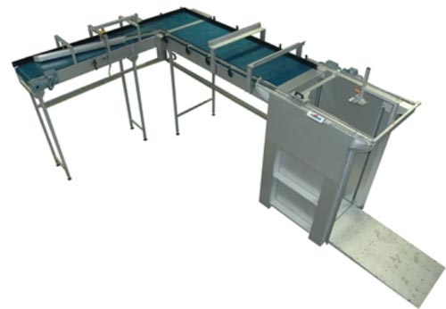 À entrée basse et sortie haute, ce matériel de manutention permet une bonne gestion des lignes d'emboîtage de boîtes vides.