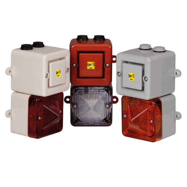 Combiné compact associant une sirène de 110 dB(A) avec un choix de 64 sons à un feu LED haute luminosité. Ce combiné est adapté pour toutes les applications générales d’alarme y compris alarmes incendie, sécurité et process.