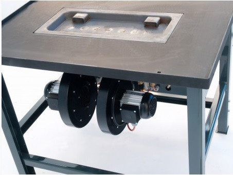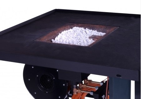 - Grâce aux brûleurs gaz, les chips céramique deviennent incandescentes, formant ainsi un foyer de braises similaire à celui d’une forge à charbon