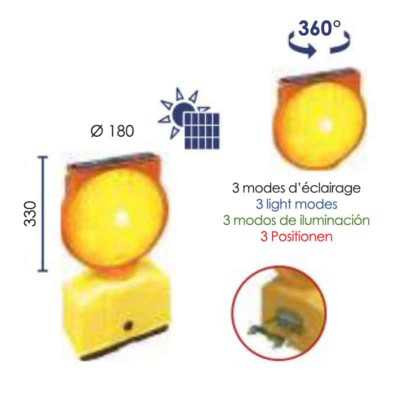 Cette lampe de chantier solaire conçue pour le balisage et la signalisation des zones de travaux.