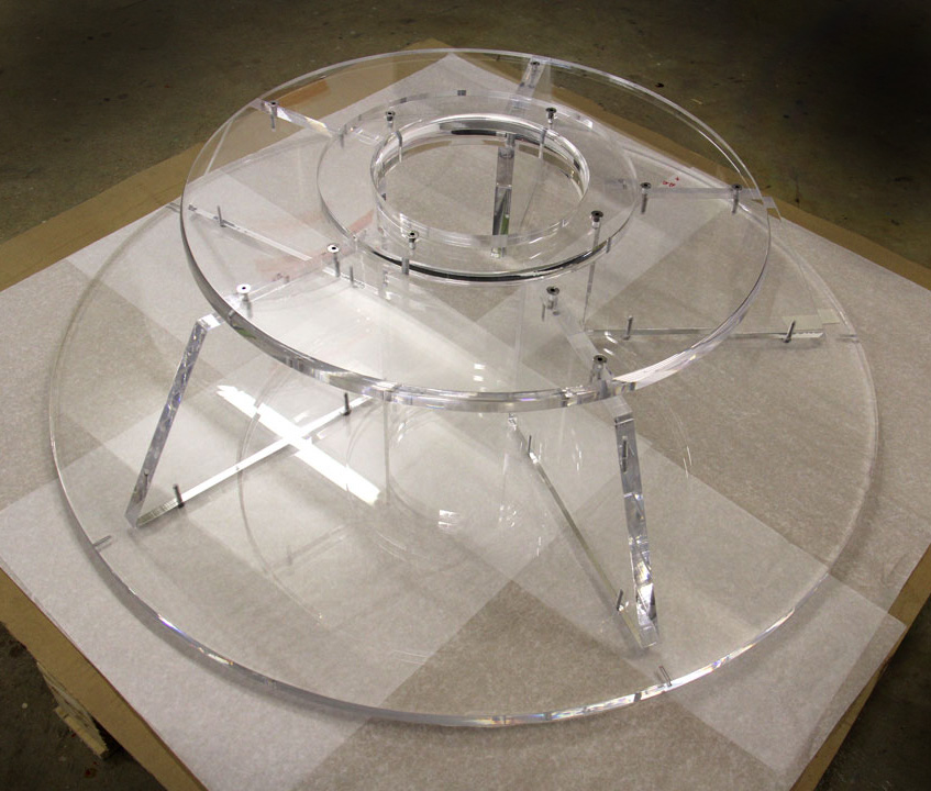 Il s"agit d"une cloche en plexi pour une table ronde de diamètre 125cm et 80cm de hauteur.