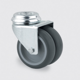 - Roulette pivotante, Monture en acier embouti, Finition zinguée, Pivot sur double chemin de billes, Axe boulonné.