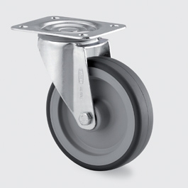Corps de roue polypropylène, Bandage (caoutchouc thermoplastique), gris non tachant.