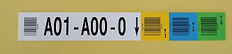 Option : étiquettes de couleurs différentes pour chacun des niveaux (7 au total par rangée) ou toutes blanches impression noire.