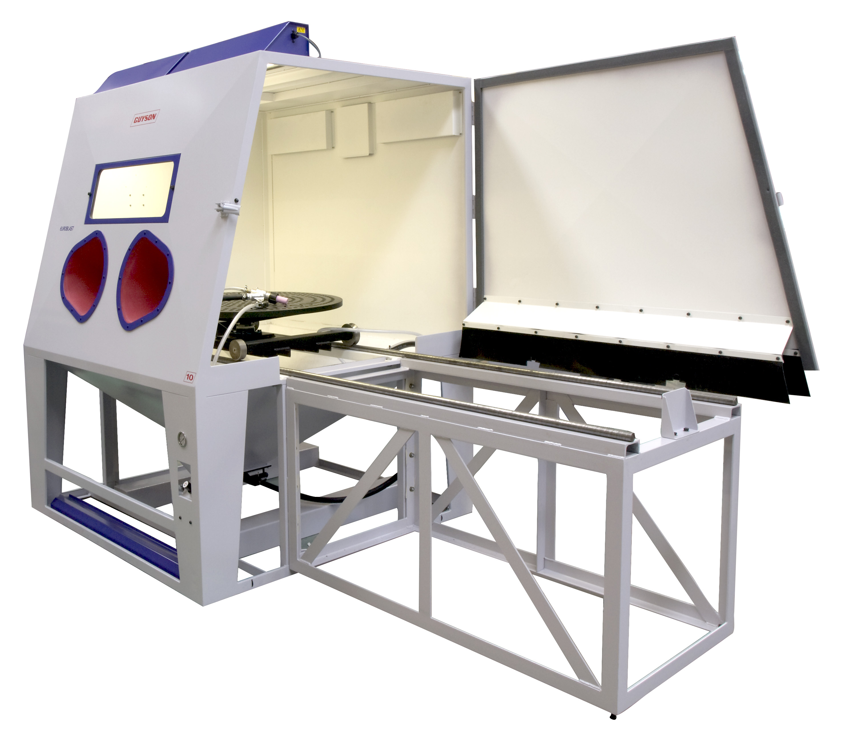 Il semblerait que votre machine référence CS BLAST 1250 équipé d"une table tournant sur chariot avec servant extérieure, du système de décolmatage pneumatique automatique, du blindage caoutchouc, d"une seconde porte latérale puisse convenir à mon besoin.
