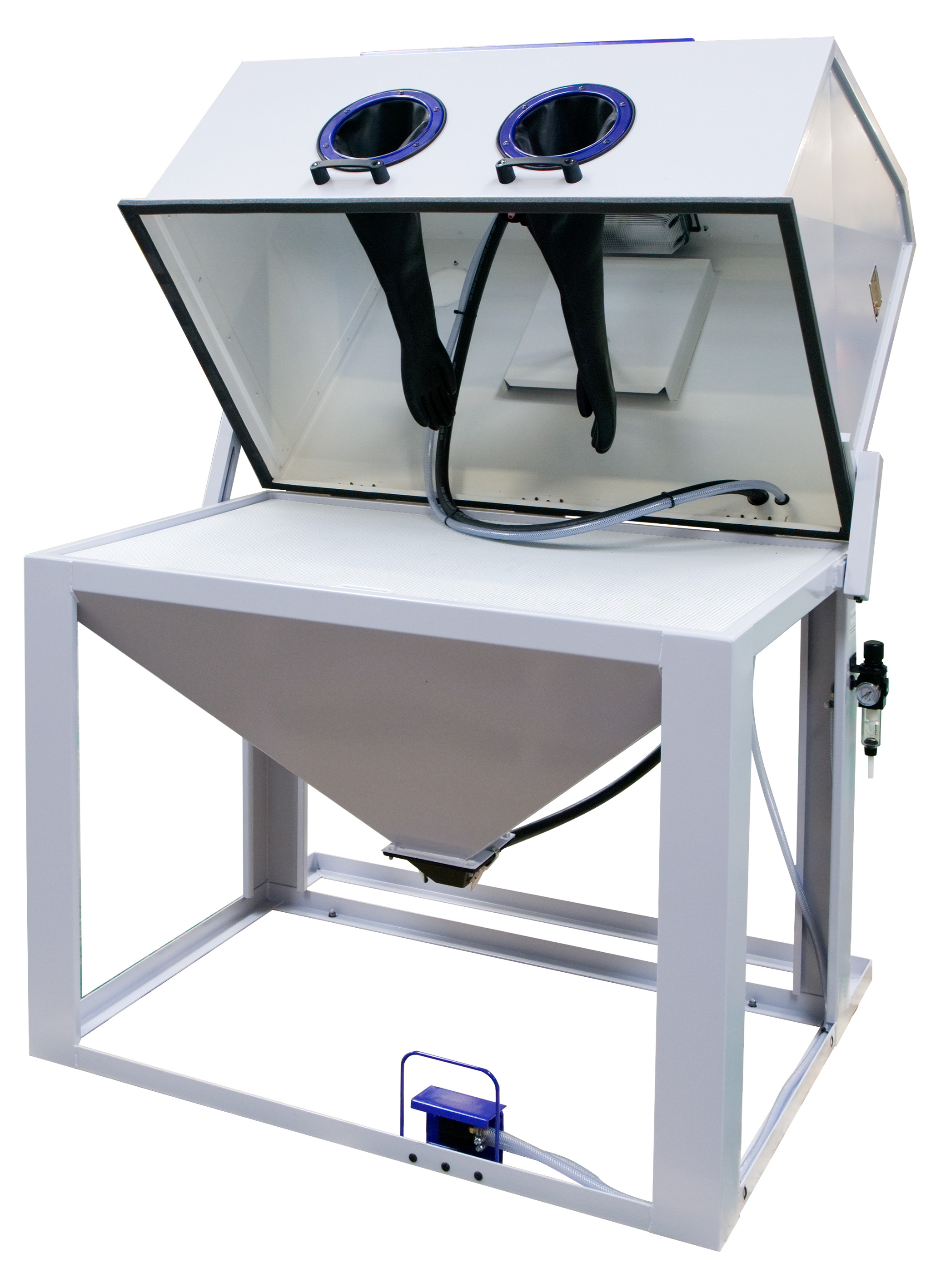 je cherche une sableuse cabine de petite taille (paillasse laboratoire) pour le traitement d"éprouvettes métallique avec la possibilité de pouvoir régler la pression et de pouvoir utiliser différents projectile, (corindon, céramique..)