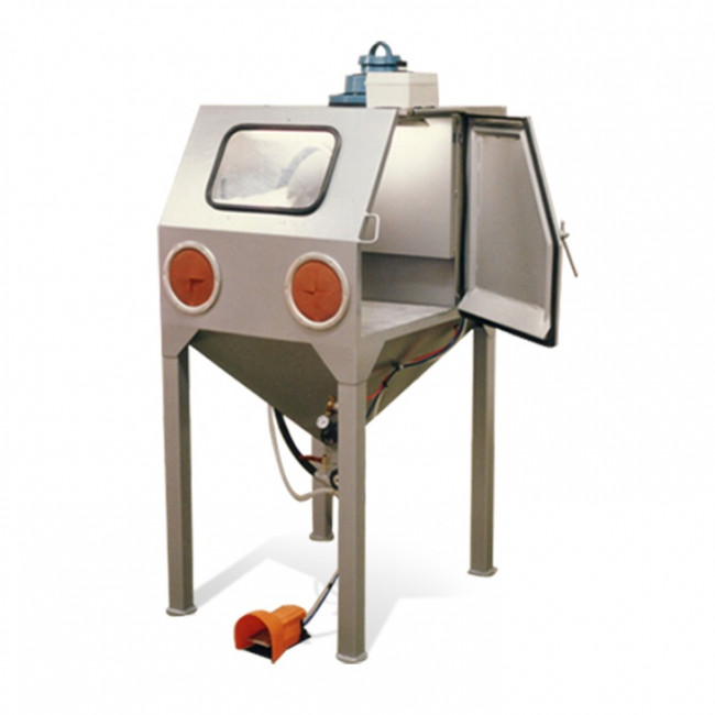 La présence d'une pédale pneumatique au pied permet à l'opérateur d'interrompre le sablage très facilement.