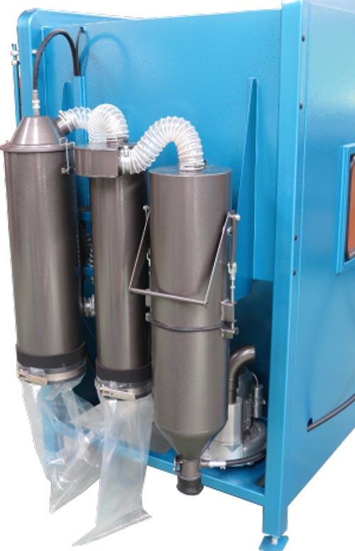 - Machines de sablage microbillage industrielles dotées d’un module intégré très performant de ventilation et de retraitement en continu de l’abrasif.