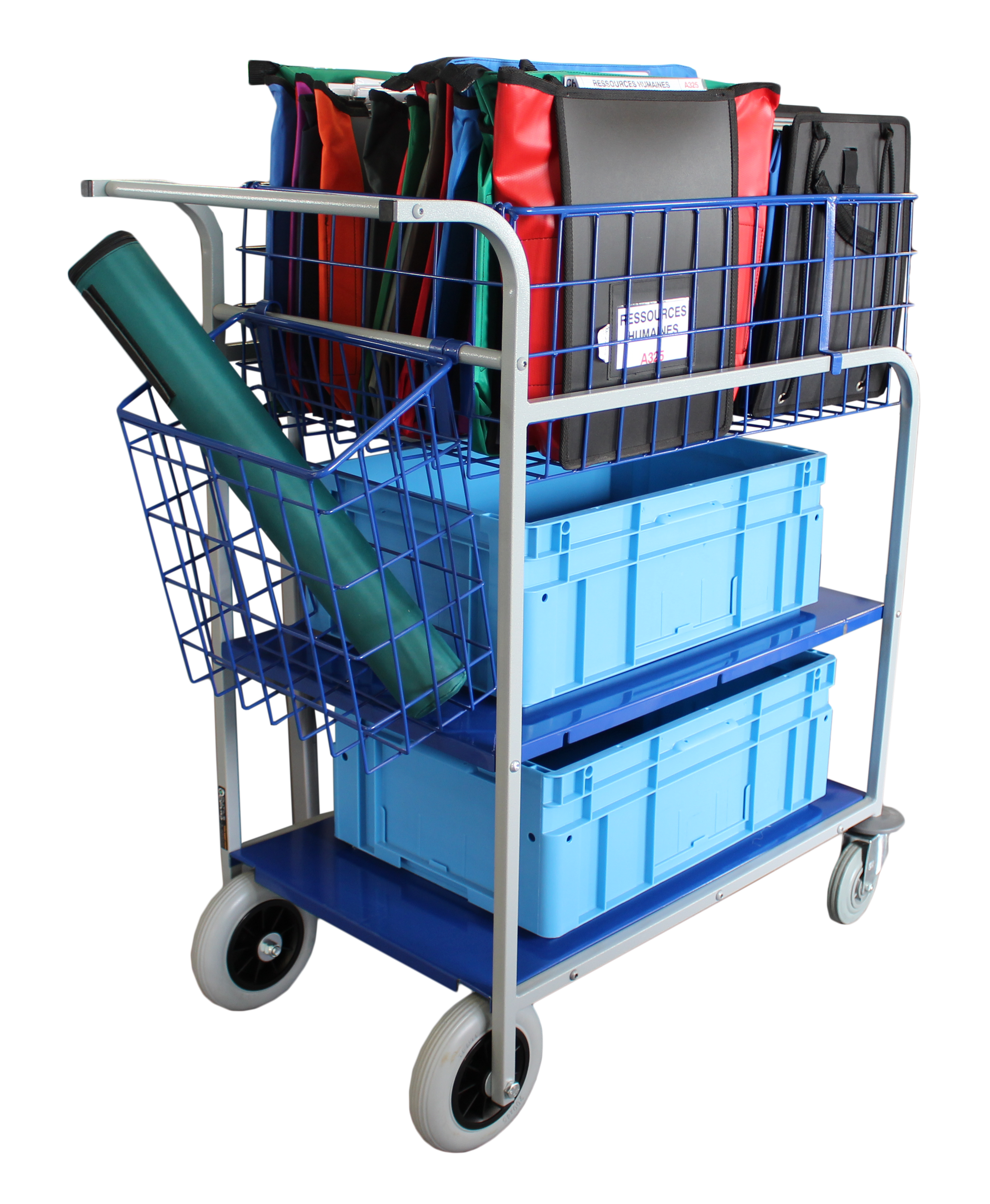 Si le volume de courrier le justifie ou si vos tournées comportent de nombreux points de livraison, le chariot de distribution-collecte grande capacité répond à vos attentes.