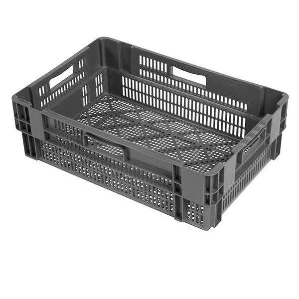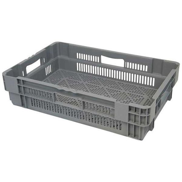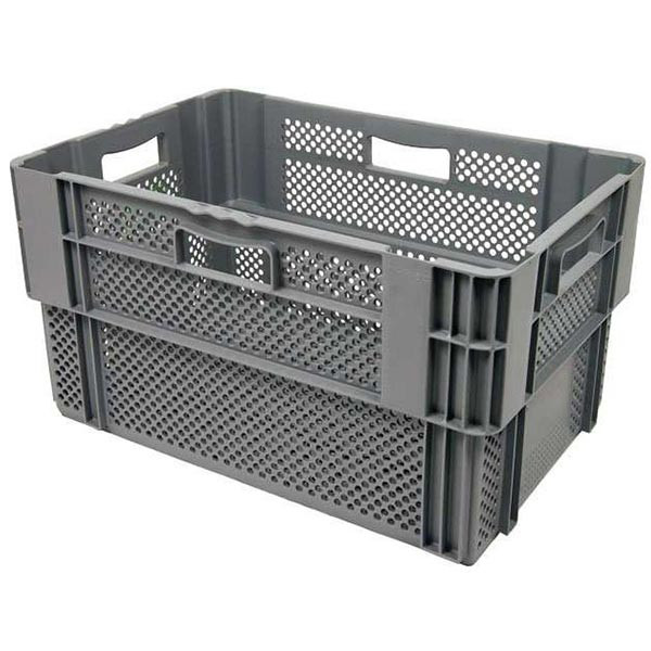 Le fond et les côtés perforés assurent une ventilation optimale, les poignées ouvertes sur tous les côtés facilitent la préhension et le transport.