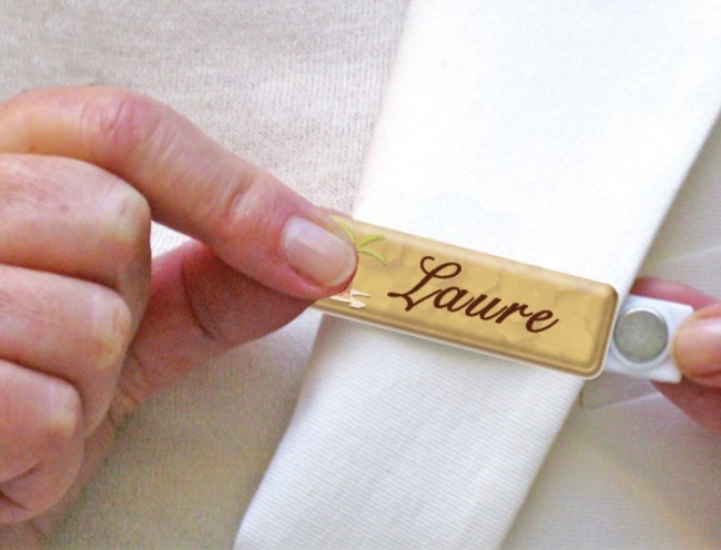 Ce badge magnétique est un véritable bijou personnalisable qui s'utilise parfaitement dans vos magasins, salons de soins ainsi que vos stands d'expositions.