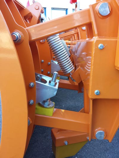 - Lame conçue sur une structure à panneaux afin de s’adapter à la surface de la route et équipée d’un système d’absorption des chocs qui permet de surmonter des obstacles supérieurs à 100 mm