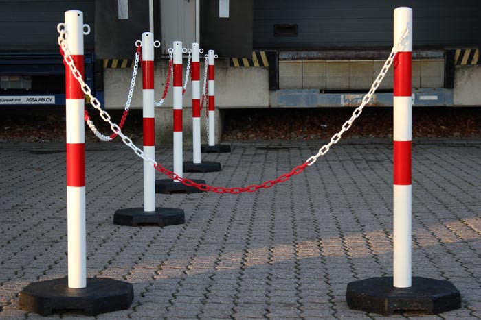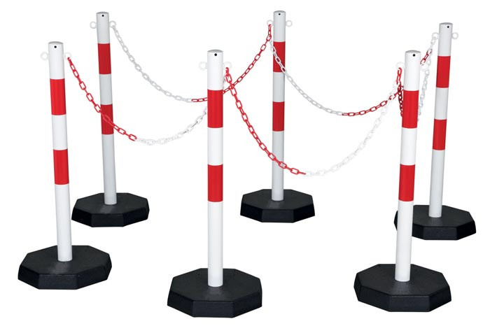Réf. TC : 861907268Kit de 6 poteaux, 6 socles et 25 m chaîne Blanc-rouge 25 Ø 60 1000 72,5