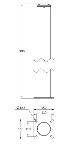Le corps du potelet est réalisé en tube acier de diamètre 102 mm, avec une platine en tôle acier d’épaisseur 6 mm. La galvanisation à chaud assure une protection durable contre la rouille et les intempéries, prolongeant la durée de vie du produit même en extérieur.