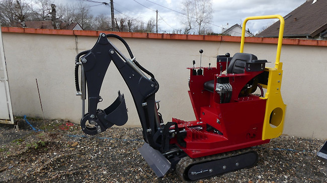 Cette micro pelle possède une tourelle tournant à 360° avec un pied de flèche 110° permettant de travailler en déporté (à raz d’un mur par exemple).
