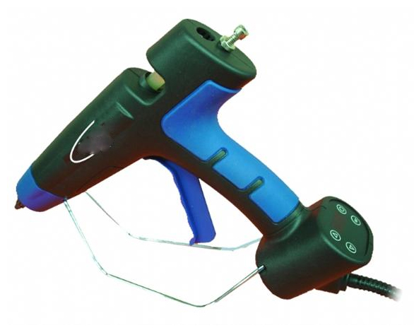Pistolet à colle professionnel à réglage électronique de la température avec afficheur, idéal pour les travaux de précision dans l’industrie de l’électronique c’est pourquoi on utilise de colle sensible comme les polyamides.