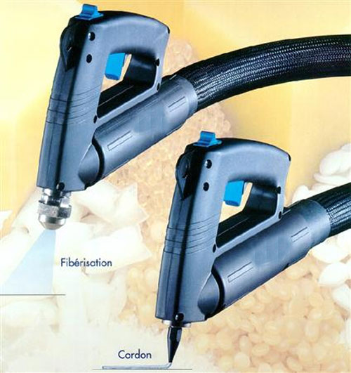 Pistolet pour générateur d'adhésifs très souple ce qui permet un accroissement de la production.