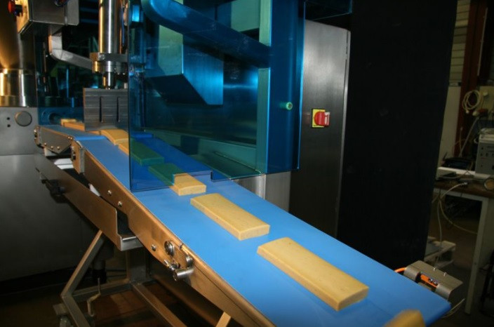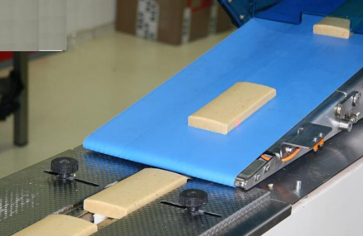 Ce trancheur à ultrason est une ligne de production automatisée, qui permet de trancher des produits et de les déposer automatiquement sur le film de la machine d’emballage.