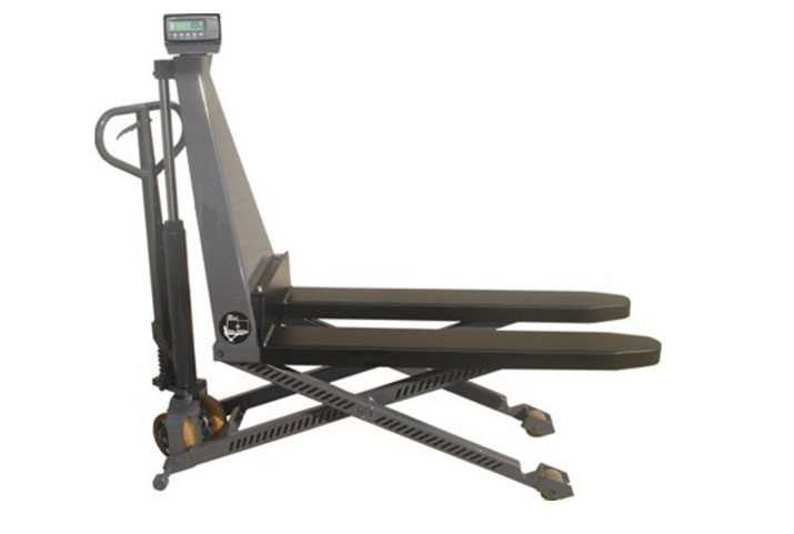 - Transpalette peseur manuel à haute levée, version acier peint