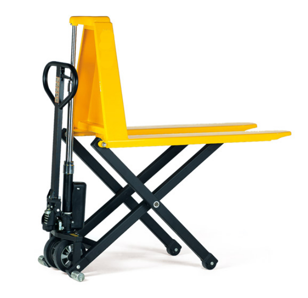 Ce transpalette ciseau à haute levée est le modèle idéal pour mettre à niveaux des palettes de manutention en évitant les problèmes de dos.