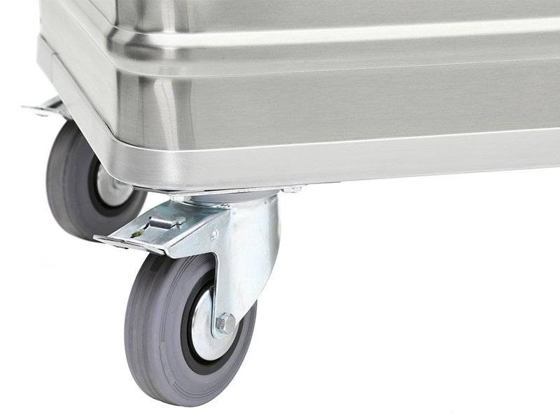Pensé pour la manutention quotidienne, il dispose de roues en caoutchouc non traçant avec pare-fils, montées sur chape acier galvanisé, garantissant un déplacement fluide.