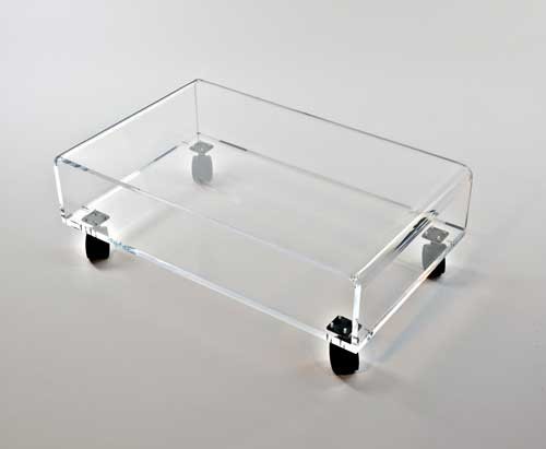 Je recherche une table en plexi sur roulettes de dimensions : 80 cm long, 40 cm de largeur et hauteur totale de 22 à 25 cm. Ceci pour un écran plat de poids 25 kg (prévoir un renfort vertical au centre. Pouvez vous me faire une offre ?