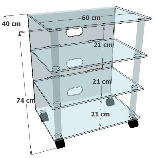 Meuble TV hifi roulettes Plexiglas épaisseur 1 cm - Dimensions: (L x P x H) 60 x 40 x 74 cm Code fiche produit :7940281
