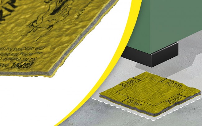 Son composite de couche de surface en Nitrile auto-adhésif et son âme en feutre haute densité garantissent la fixation au sol et la réduction de la transmission d’énergie vibratoire.