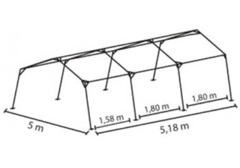 La tente est conçue pour la préparation et la distribution des repas, dans un centre de vacances qui ne possède pas de cuisine permanente.