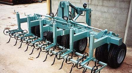 Le Tasseur à pneus est un outil poussé de 8 ou 12 roues pneumatiques suivant modèle, il se compose d’un train de 4 roues centrales d’une largeur correspondant à la voie intérieure des roues du tracteur ainsi que 2 demi-trains de 2 roues (modèle en 8 roues) ou 4 roues (modèle en 12 roues) extérieures permettant de réappuyer les parties du labour qui ne l’ont pas été par les roues du tracteur.