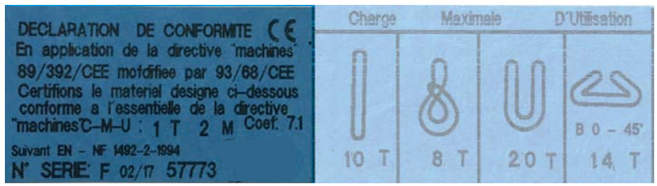 Ce matériel de levage est conforme aux exigences de sécurité européennes.