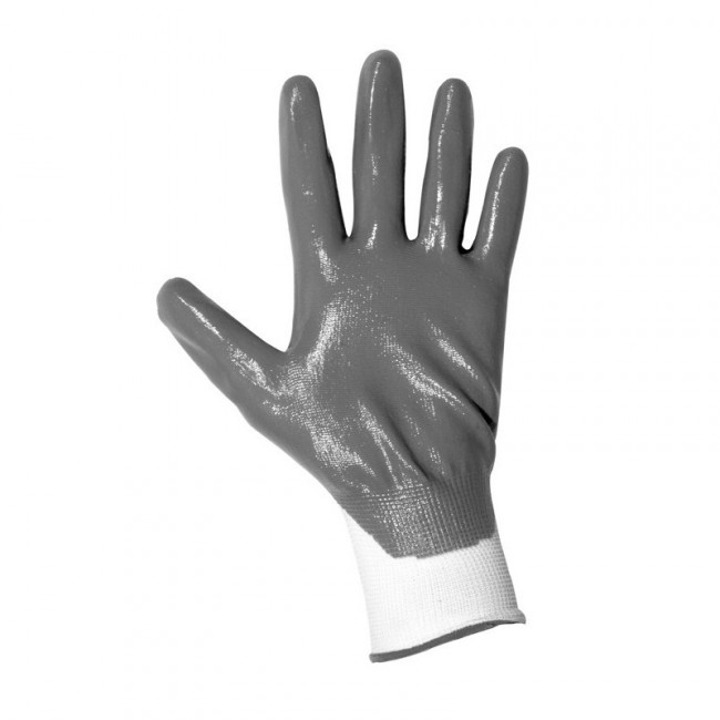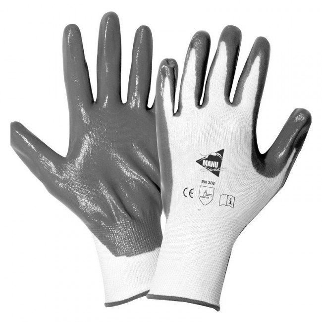 Ces gants de manutention moyenne en maille polyester avec une enduction nitrile, au niveau de la paume et des doigts.
