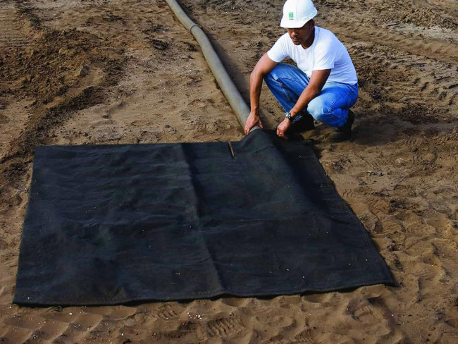 Elle est parfaitement adaptée pour les opérations de drainage lors des travaux de construction et du pompage de l'eau. En filtrant ces eaux chargées, elle retient les éléments polluants, et prévient la contamination du réseau des eaux pluviales.