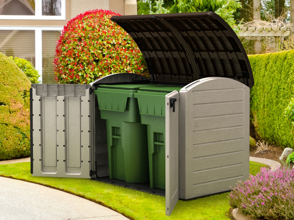 Avec une capacité de 2000 L, doté de couvercle avec ouverture à vérin et deux portes avec ouverture à l'avant, il offre un espace de stockage important (vélos - poubelles extérieures..)