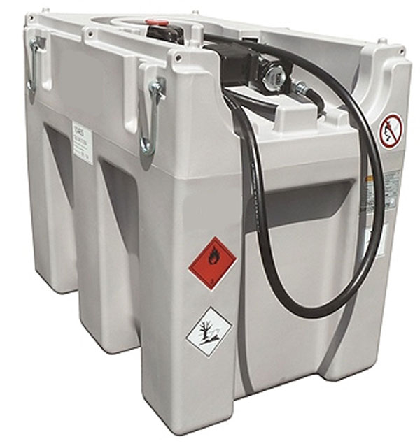 - Station de ravitaillement de 600 litres - Cuve en polyéthylène simple paroi, homologué ADR - Dispositif de rangement du flexible de distribution - Passages de sangles pour arrimer la cuve - Passage de fourches intégré - Support pistolet - Bouchon de remplissage - Soupape de surpression et d’aération - Vanne coupe circuit - Paroi antiroulis - Pompe électrique à palettes auto-amorçante 24V, débit 45 l/min - Pistolet automatique avec raccord tournant 4 m de flexible de distribution - Batterie Lithium-Ion 24V, 3Ah rechargeable en 1,5 h Autonomie de 900 litres, batterie pleinement chargée - Ravitaillement de la cuve par pistolet automatique