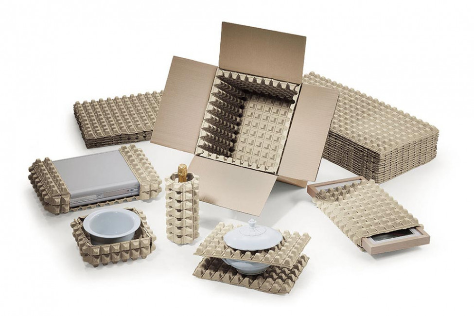 - Formats de calage en cellulose moulée multi-usages (780 x 380 mm) formés de cônes amortisseurs.