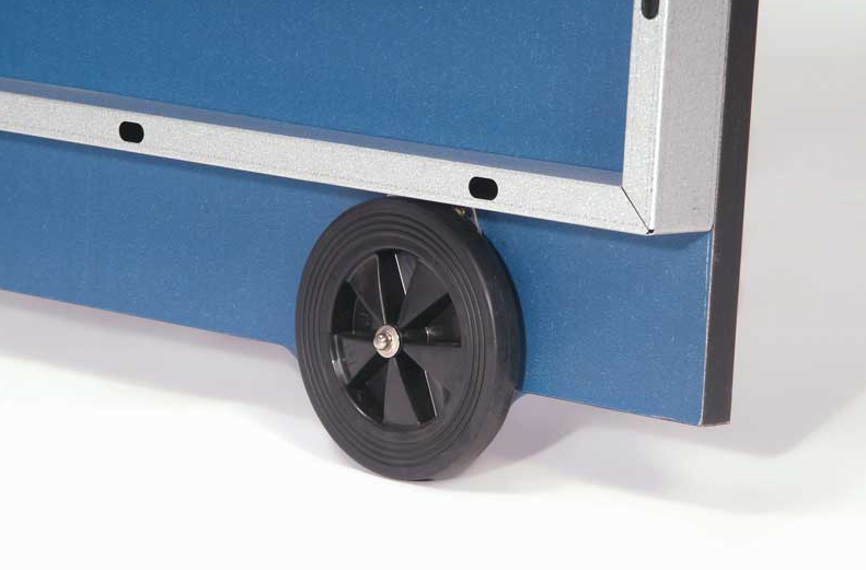 Cette table de ping pong statique à encombrement très réduit répond parfaitement aux besoins des salles spécifiques. Son châssis en acier est très robuste et elle jouit d'une excellente stabilité. Ses roulettes sous le plateau facilitent son déplacement.