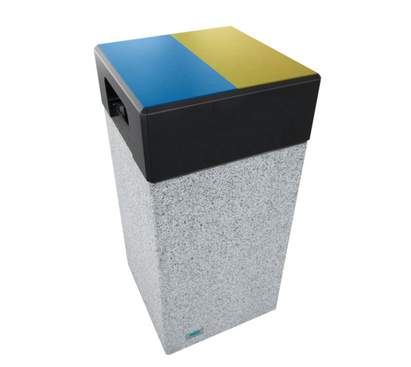 | Réf. TC :218093533 | Corbeille Kube tri sélectif en béton préfabriqué | 70L+70L | L 500 x l 500 x H 1085 mm | Bleu/Jaune | -