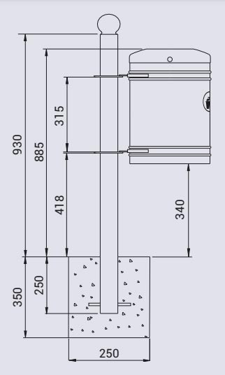 Cette borne de tri sélectif sur pieds se fixe directement au sol via un scellement simple et rapide.