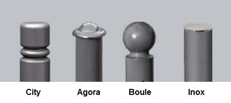 Pommeaux au choix : City, Agora, Boule ou Inox brossé, pour une personnalisation esthétique de l’espace public.