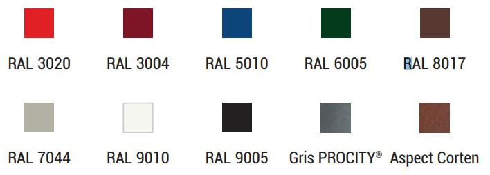 Couleurs : Disponibilité de plusieurs finitions RAL (8007, 6005, 9010, etc.) permettant d’intégrer la poubelle harmonieusement dans divers environnements.