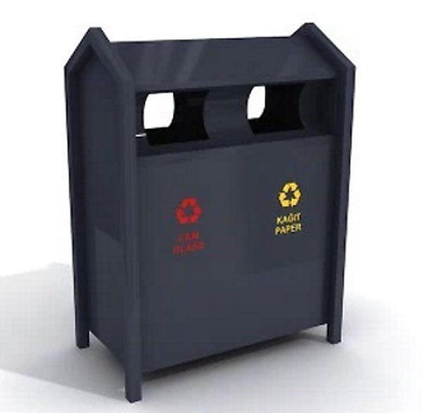 C’est une poubelle très résistante, fabriquée en tôle métallique, bien traitée contre les agressionsclimatiques, d’un design qui s’harmonisera amplement avec toutespacepublic et elle est équipée de 2 bacs, afin de faciliter la gestion du déchet une fois collecté par le centre de tri.