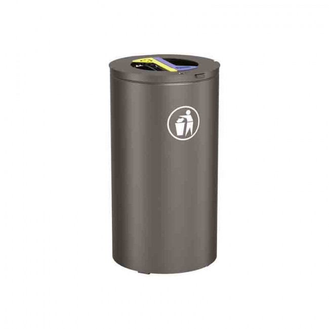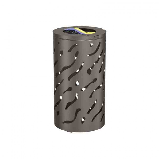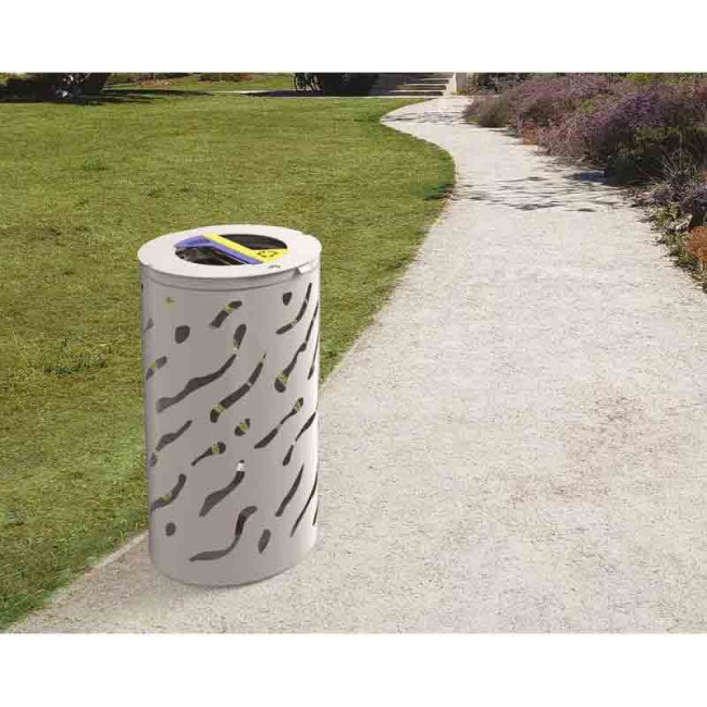 Il reçoit deux sacs de 60 litres (sacs non fournis) et dispose d’un couvercle équipé d’une serrure à clé triangle.