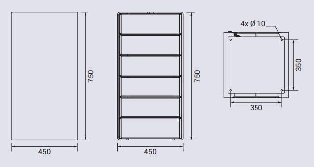 • Dimensions (L x l x H) 450 x 450 x 750 mm