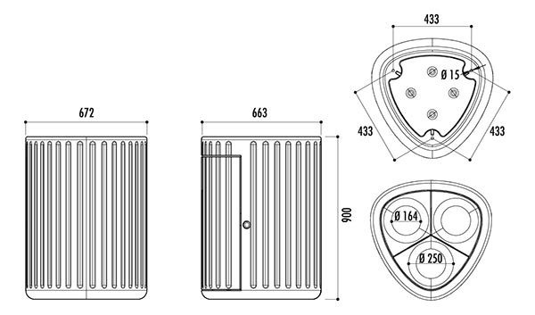 - Capacité : 3 x 60 litres
