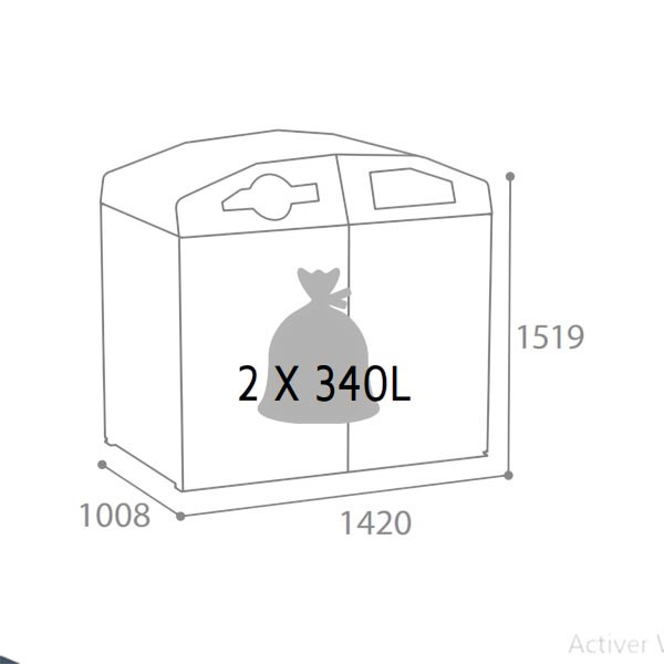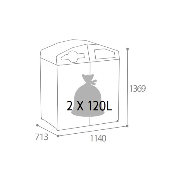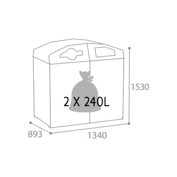 Elle accueille 2 bacs roulants de 120 L, 240 L ou 340 L, pour gérer facilement deux flux de déchets distincts (emballages, papiers, ordures résiduelles, biodéchets…).