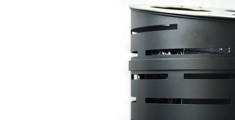 Traitement par cataphorèse du corps de la poubelle et thermo laquage avec finition architectonique, oxiron noire.